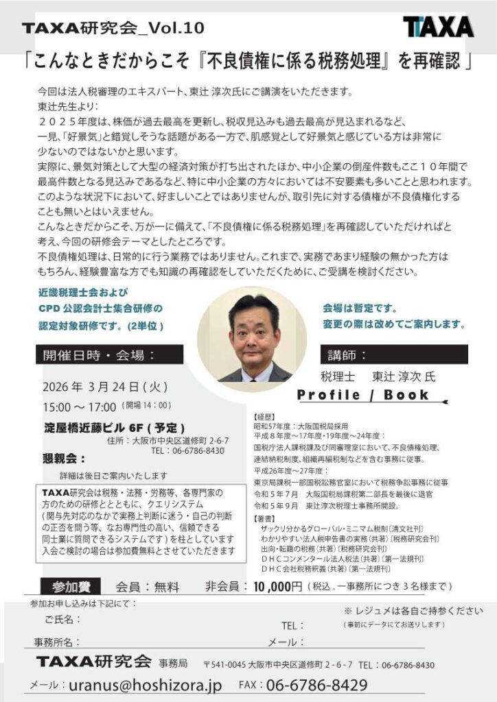今回は法人税審理のエキスパート、東辻 淳次氏にご講演をいただきます。